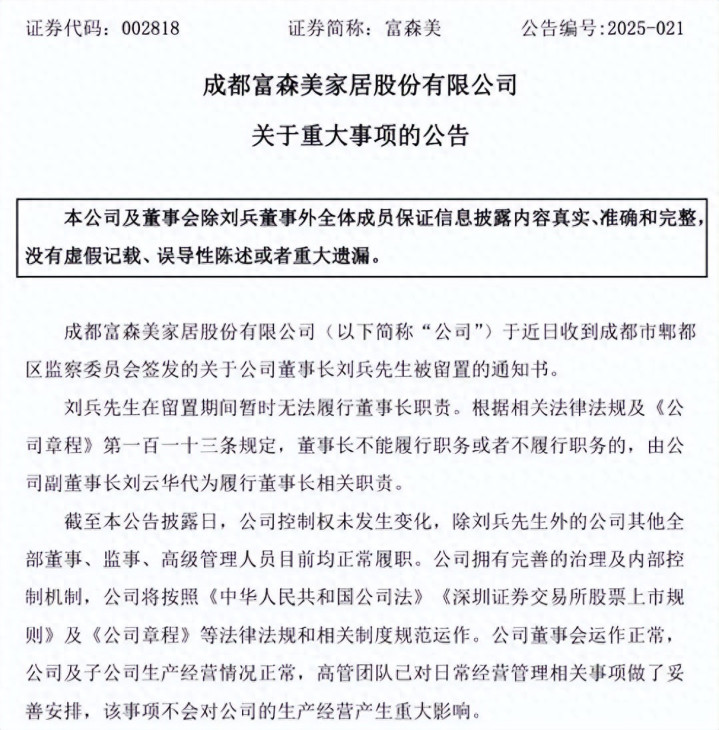 不外話說回歸,富森好意思的抗風險本領依然是行業頂尖,劉兵被查后,公司立馬秘書由副董事長、他的姐姐劉云華代行權力,家眷控股80.11%的股權結構讓截止權安如磐石。