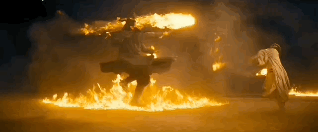 火光燦燦,火光灼灼,二東談主暗夜對決,火的照亮寓言感,某種程度上高過點火的消滅感。