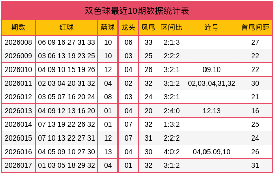 夏師傅第2026018期雙色球數據統計表
